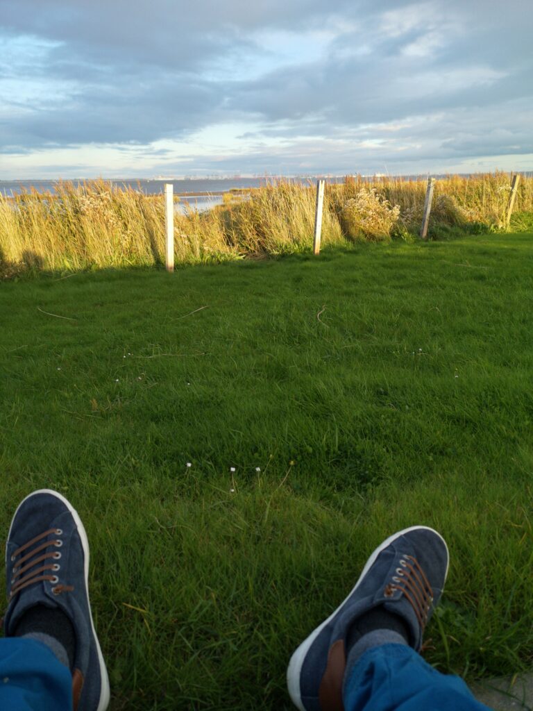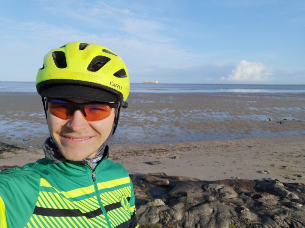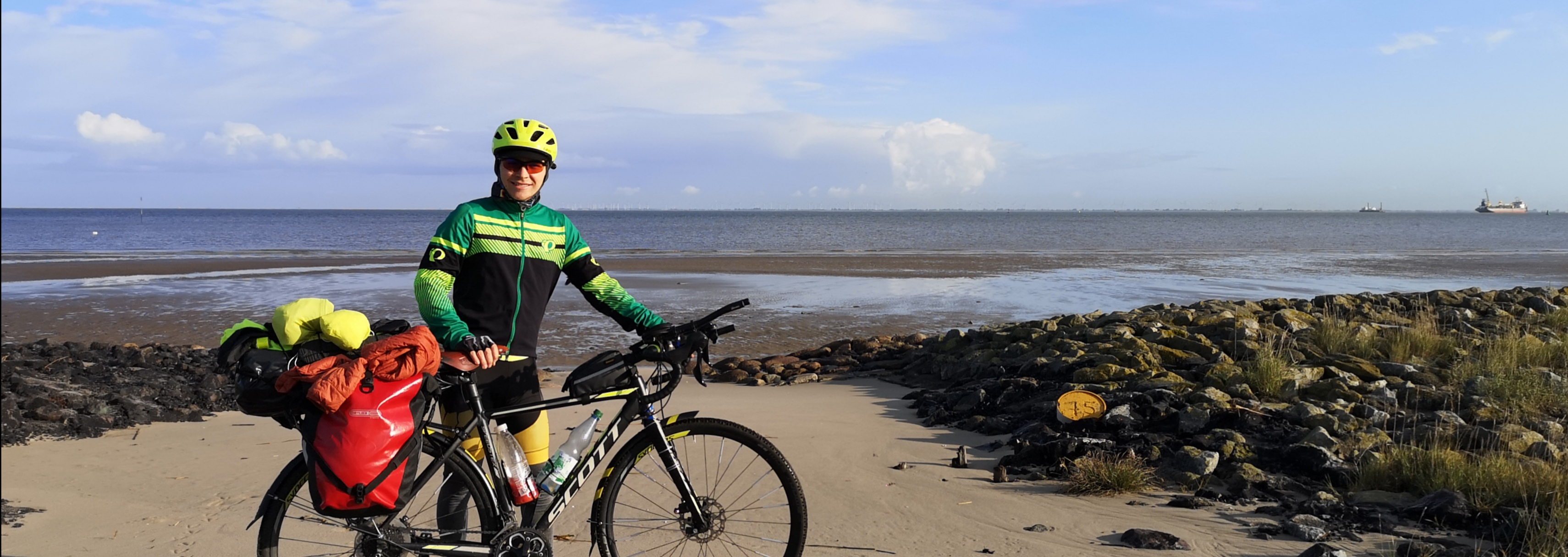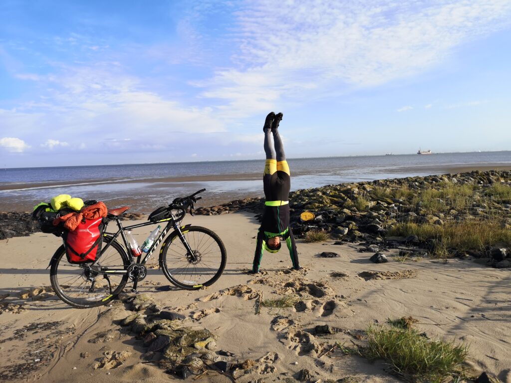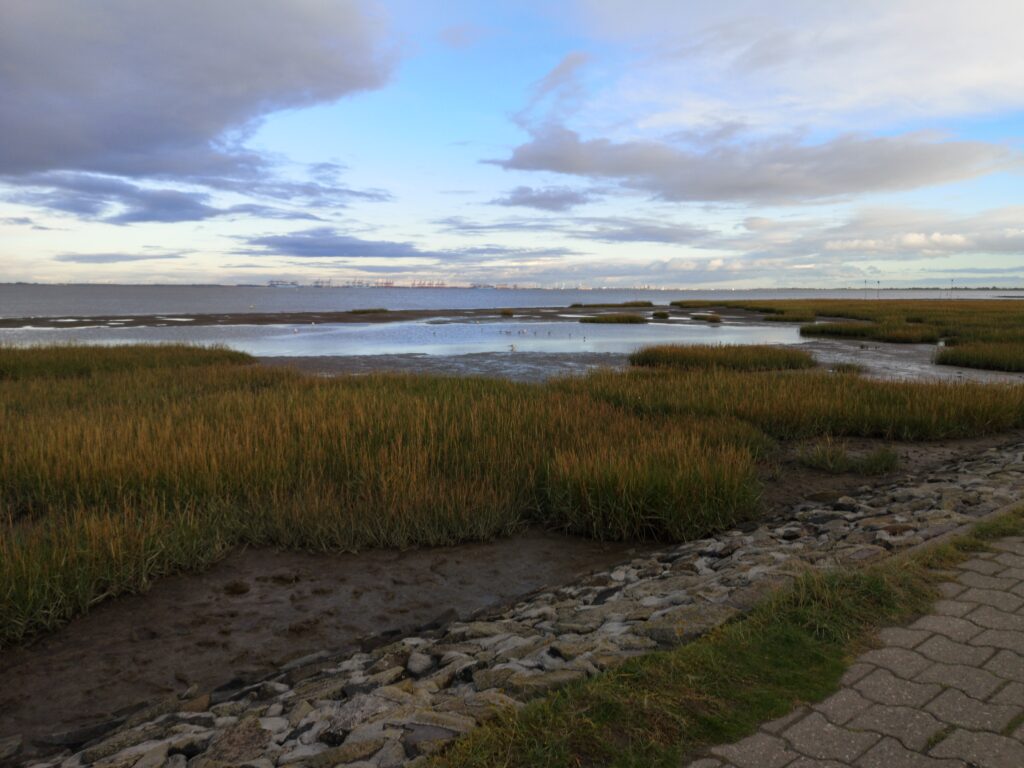 Frisch gestärkt und wieder getrocknet bin ich bei morgendlichem Sonnenschein aufgebrochen. Die nächsten Kilometer an der mittlerweile sehr breiten Elbe bis Cuxhaven mit Rückenwind habe ich sehr genossen und das erste Mal gewusst, weshalb ich mich gestern durch die Kälte gekämpft habe.