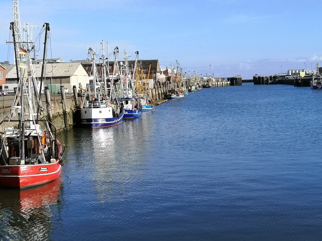 Von der Nordspitze Cuxhaven ging es nun in Richtung Südwesten die Küste entlang. Ich war an der Nordsee angekommen. Immer dem Wind entgegen. Die Radwege leerten sich wieder so schnell wie sie sich gefüllt hatten und ich konnte weiter die Sonne und die Natur genießen. Mittags machte ich Rast an einem kleinen Fischerhafen, in dem drei Kutter lagen und damit den gesamten Hafen füllten. Also wirklich klein 😀