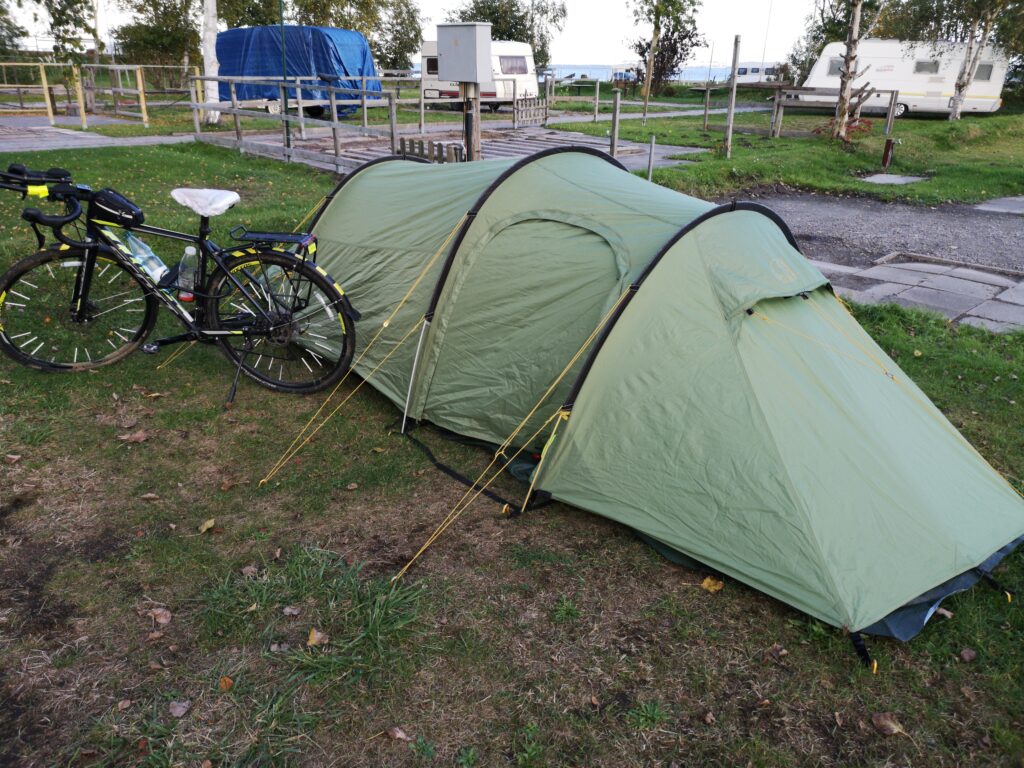 Angekommen auf dem kleinen Campingplatz direkt am Wasser machte ich mir Abendessen, es gab Curry-Reis mit einem ganzen Glas Gewürzgurken und dazu ein warmes Müsli, und entspannte mich beim Sonnenuntergang mit Blick auf den Bremerhaven-Hafen.