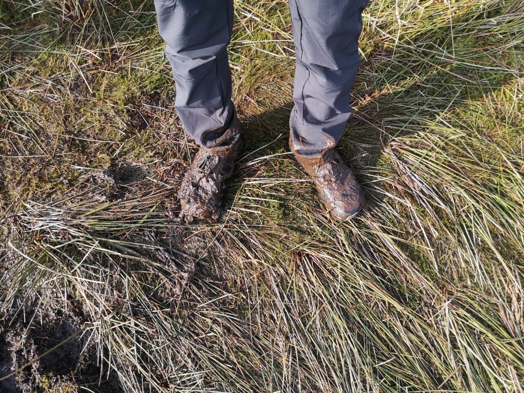 Seal Skinz sind super. Das sind Socken in die eine Plastikfolie eingearbeitet ist. Sie sind sehr wasserdicht. Wir haben sie nach dem Aufstehen angezogen und sie haben unsere Füße warm gehalten. Wir sind durch Pfützen, Matsch, Moos und Morast gewatet und unsere Füße waren trocken und warm.