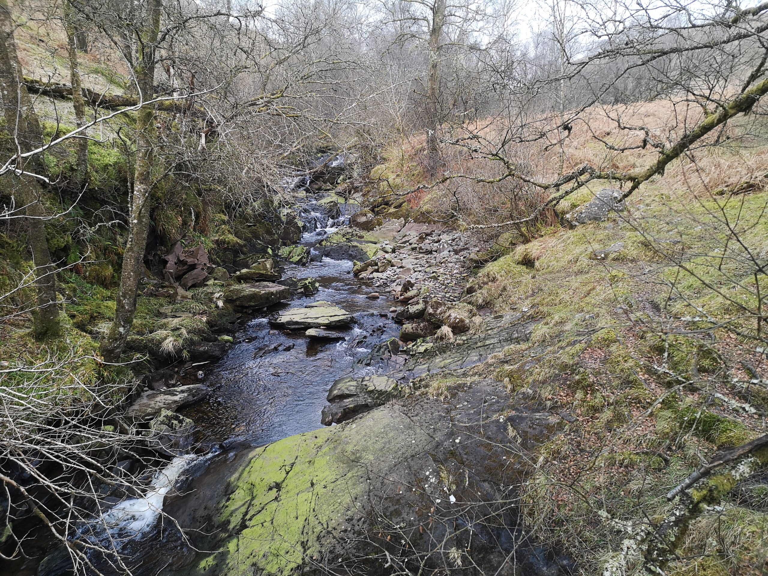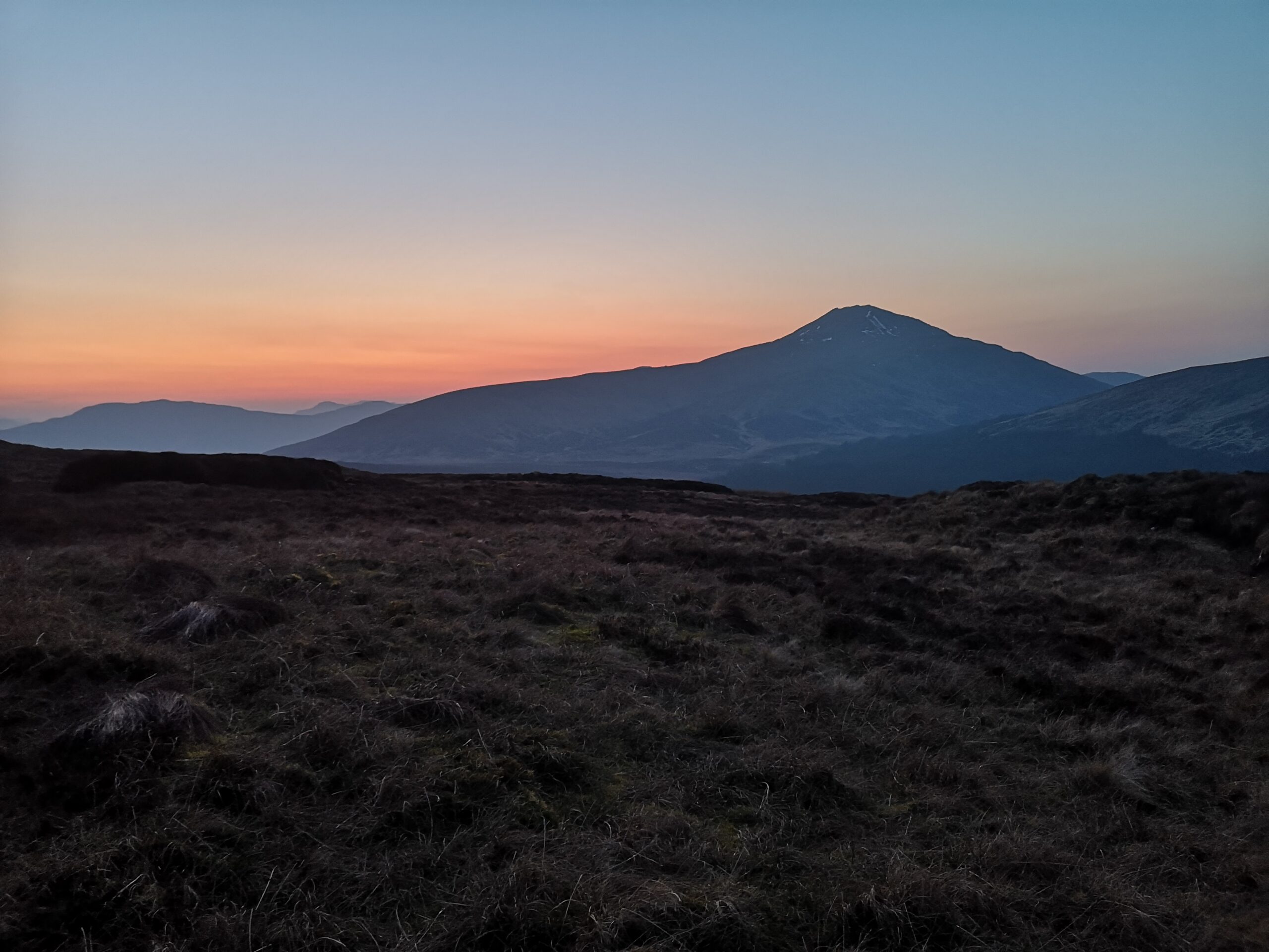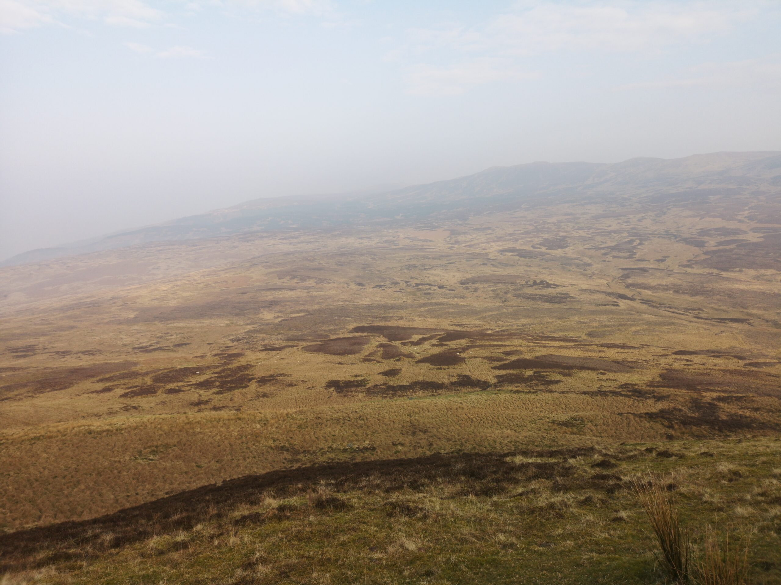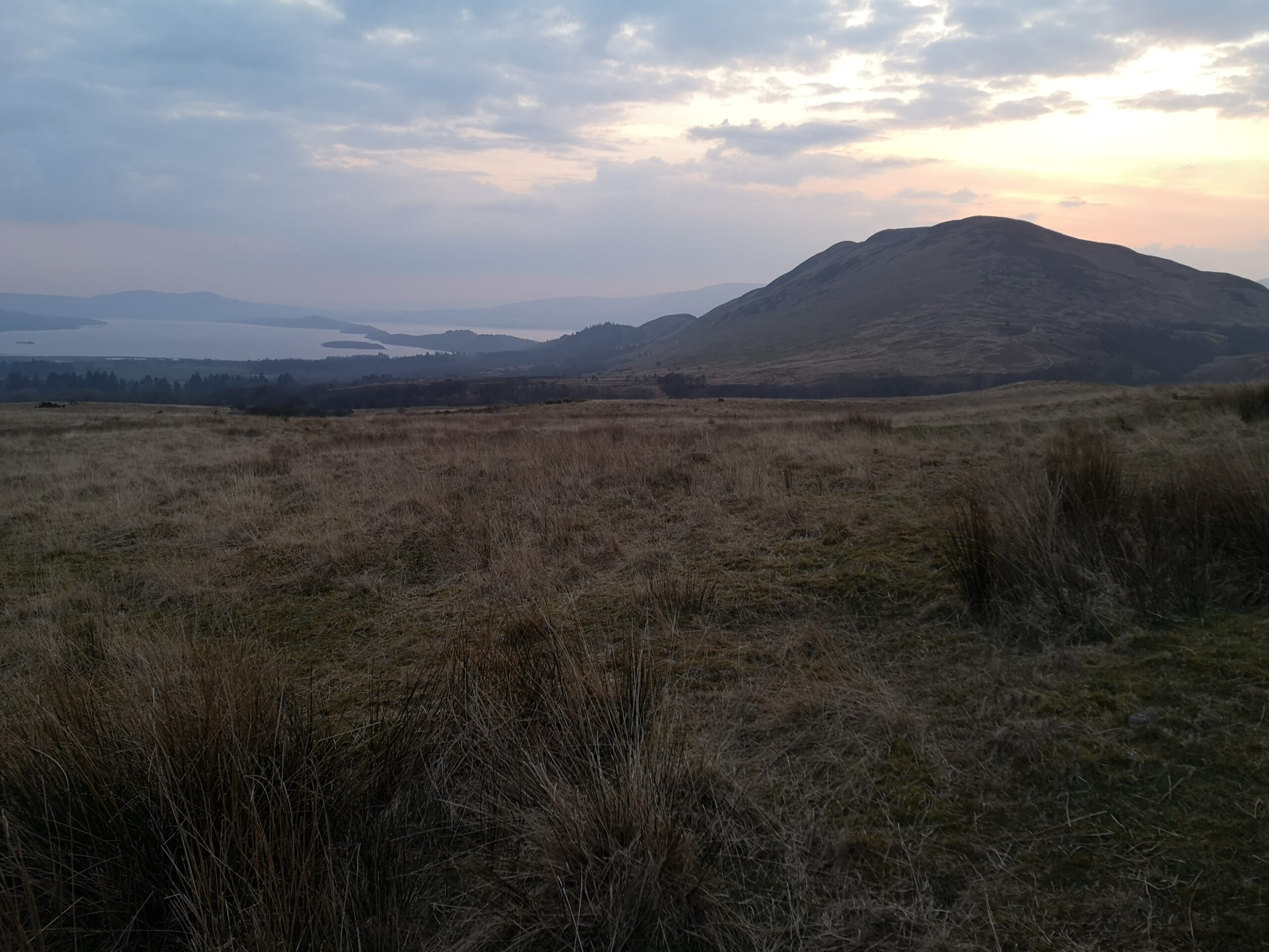Zuvor hatten wir unseren nächsten Abschnitt geplant. Wir könnten entweder dem West Highland Way folgend hinunter ans Ufer absteigen und den Tag lang Fahrstraße laufen oder wir versuchen, oben auf den Bergkuppen zu bleiben und parallel zum See zu laufen. Letzteres klingt sehr verlockend. Der Knackpunkt: Über die Bergkuppen sind keine Wanderwege eingezeichnet. Auch müssten wir dafür erst einmal die Sumpfige Hochebene durchqueren. Auch hier sind keinerlei Wege auf den Karten, die wir haben, eingezeichnet. Auf Satellitenbildern kann ich einige Trampelpfade und vereinzelte Quadspuren ausmachen, also scheint die Ebene nicht ganz so sumpfig wie erwartet zu sein. Wir denken uns „Gib ihm, das Wetter wird nicht mehr besser und im Notfall können wir auch noch umdrehen und ins Tal absteigen“ und verlassen den ausgetretenen Pfad des West Highland Ways.
