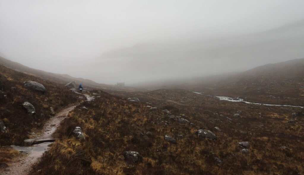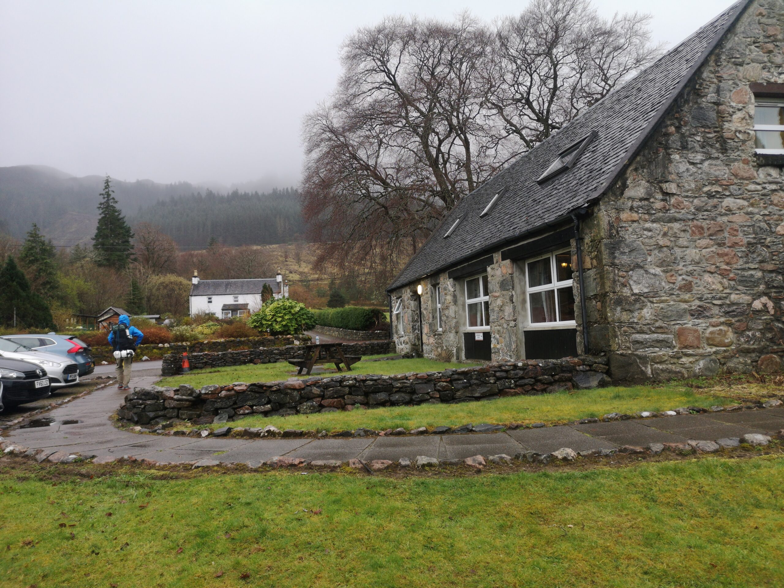 Der Weg führt uns zum Bothy Coire Fionnraich. Dieses ist zweistöckig mit zwei Aufenthaltsräumen inklusive Kamin und Tisch im Erdgeschoss und drei Zimmern im Obergeschoss, die als Schlaflager dienen.