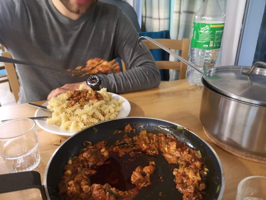 Am Abend machen wir eine fette Pastaparty. Ich kann glaube ich mit Gewissheit sagen, das ich noch nie so viel Nudeln auf einmal gegessen habe. Von dem Kilogramm Nudeln verdrücken wir ca 750 Gramm. Dazu verschlingen wir eine Soße aus einem Bündel Frühlingszwiebeln, einer Schale Pilzen, zwei Gläsern fettigem, rotem Pesto und 300 Gramm Cheddar. Ich bin ernsthaft erstaunt, dass mein Magen überhaupt so groß ist, dieses Volumen zu stemmen. Ich höre rechtzeitig auf zu essen, so dass ich ein angenehm gesättigtes Gefühl habe und wir lassen den Abend entspannt ausklingen.